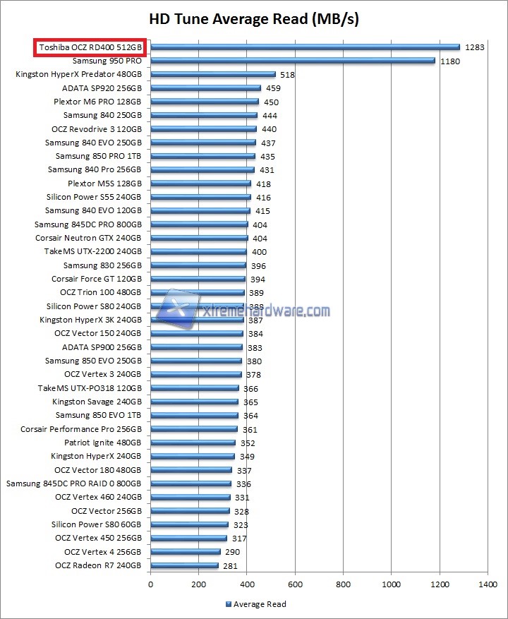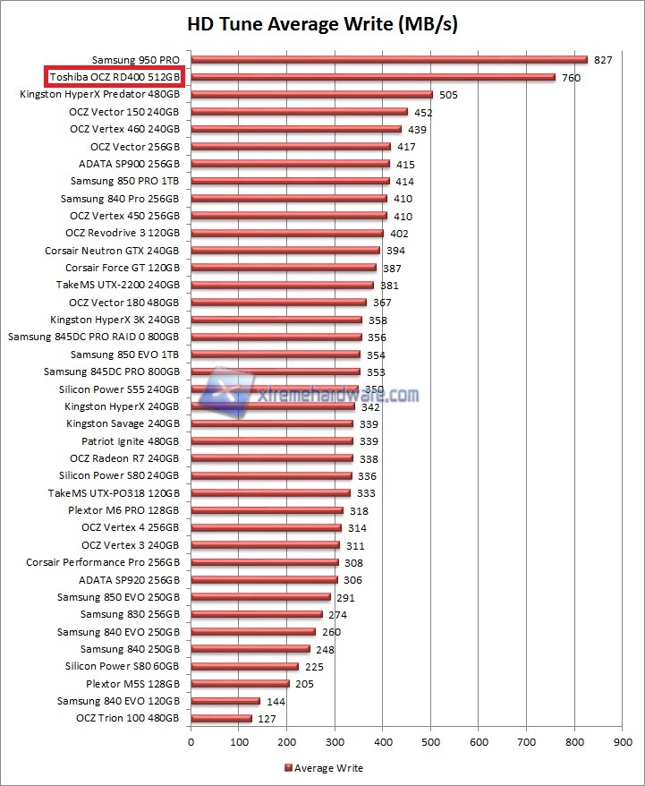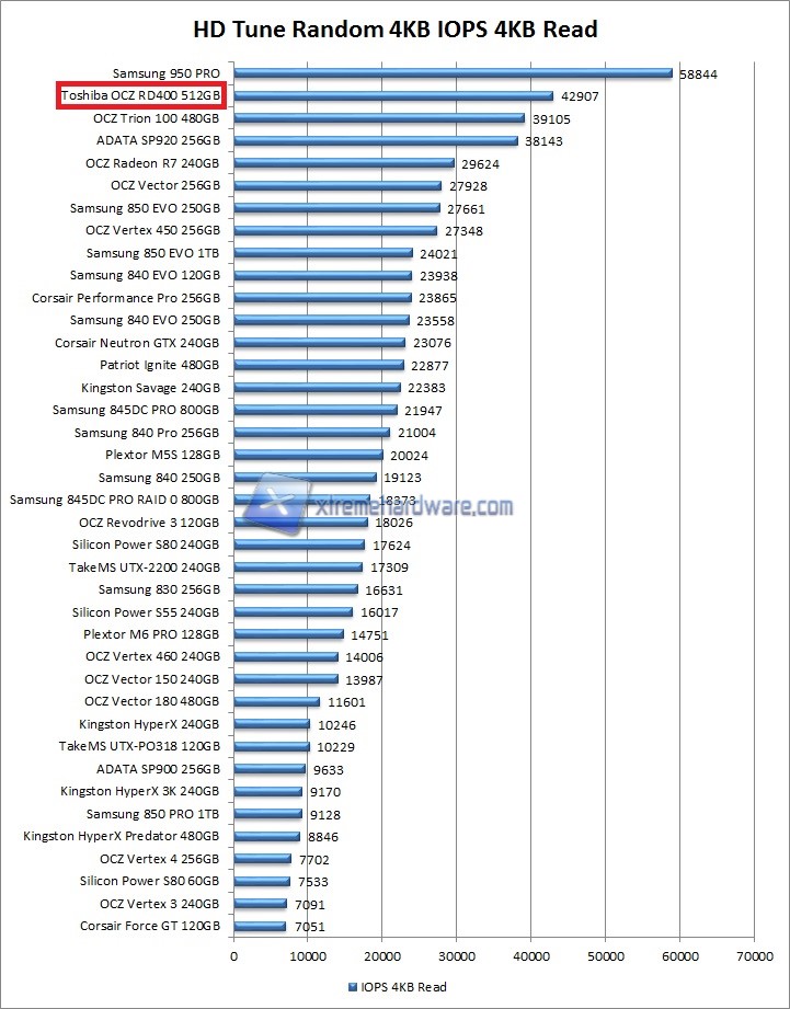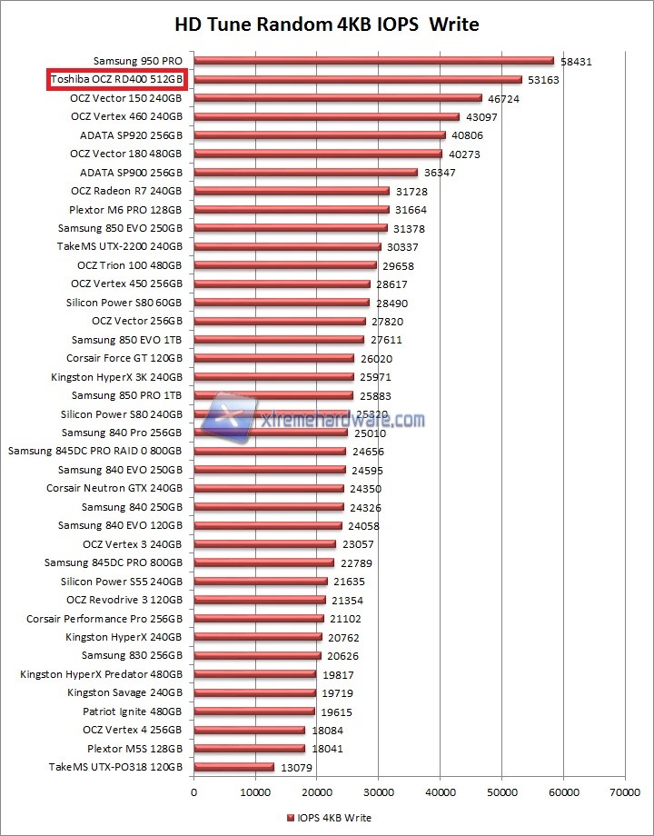 A seguire i grafici con i valori ottenuti dal Toshiba OCZ NVMe RD400 da 512GB: